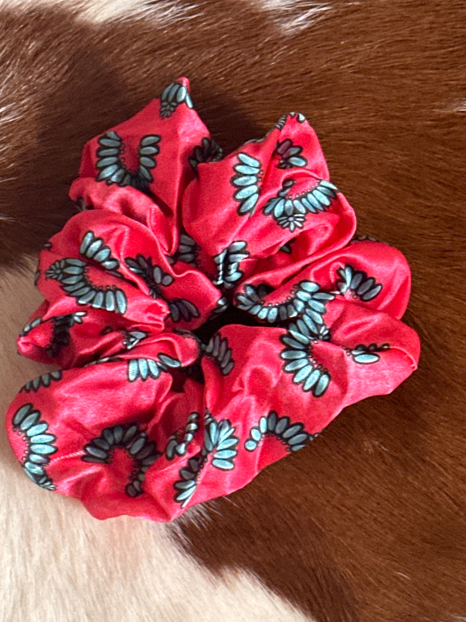 Pink turquoise cluster scrunchie